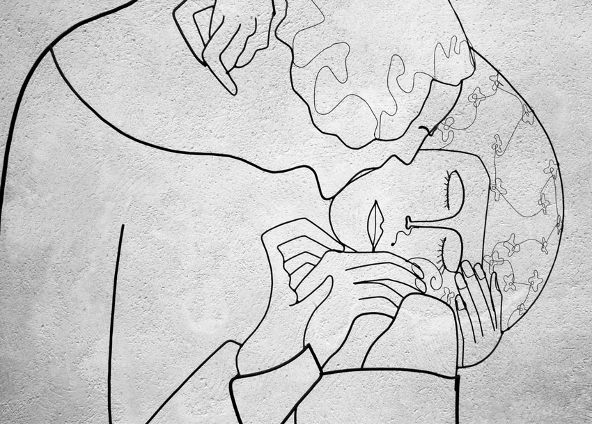 - Le sein, sculpture, file de fer, wire, sein, maternité, femme, enfant, bébé
