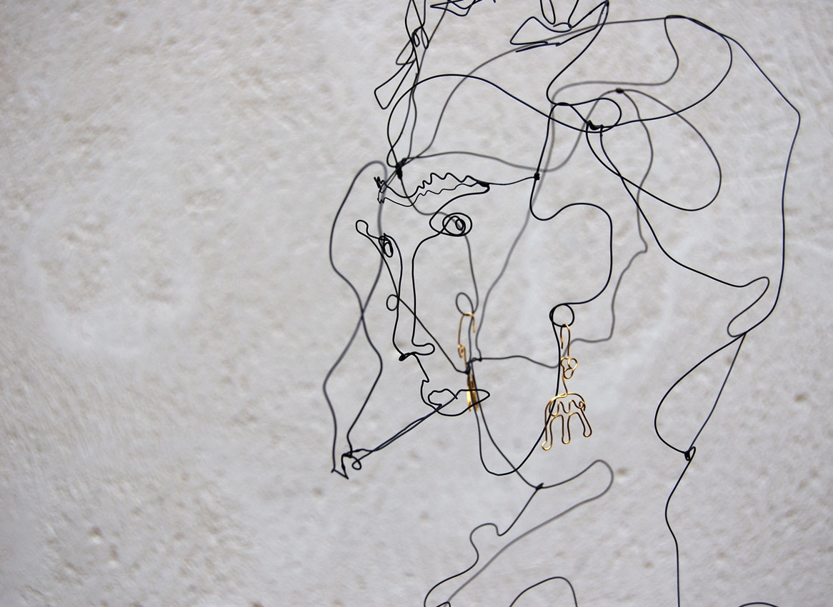 - T’as de beaux yeux! Tu sais…, fil de fer, sculpture, wire